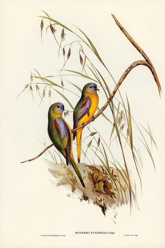 Chestnut-shouldered Grass-Parakeet-Euphema pulchella White Modern Wood Framed Art Print with Double Matting by Gould, John
