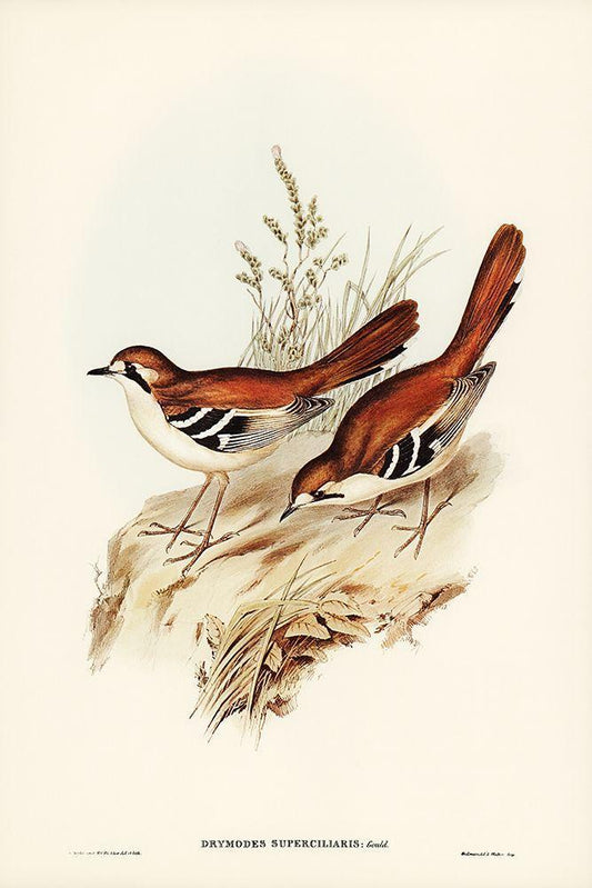 Eastern Scrub-Robin-Drymodes superciliaris White Modern Wood Framed Art Print with Double Matting by Gould, John