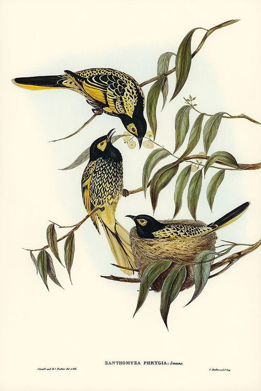 Warty-faced Honey-eater-Zanthomyza Phrygia White Modern Wood Framed Art Print with Double Matting by Gould, John