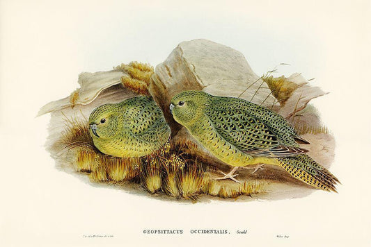 Nocturnal Ground-Parakeet-Geopsittacus occidentalis White Modern Wood Framed Art Print with Double Matting by Gould, John
