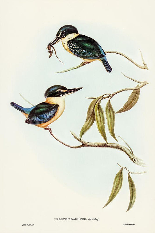 Sacred Halcyon-Halcyon sanctus White Modern Wood Framed Art Print with Double Matting by Gould, John