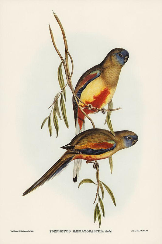 Crimson-bellied Parakeet-Psephotus haematogaster White Modern Wood Framed Art Print with Double Matting by Gould, John