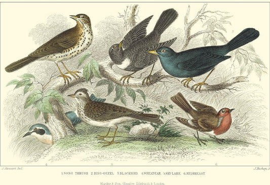 Skylark, Songthrush and Redbreast White Modern Wood Framed Art Print with Double Matting by Stewart, J.