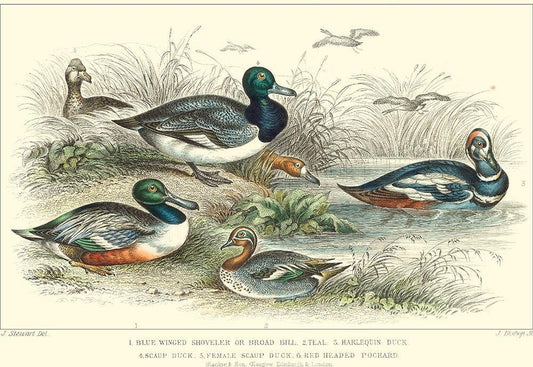 Duck Varieties White Modern Wood Framed Art Print with Double Matting by Stewart, J.