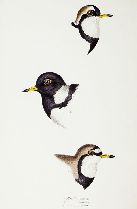 Black-fronted dotterel-Lesser sand-plover and Double-banded plover White Modern Wood Framed Art Print with Double Matting by Gould, John