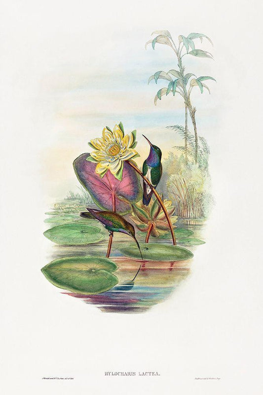 Sapphire-breasted Emerald-Hylocharis lactea White Modern Wood Framed Art Print with Double Matting by Gould, John