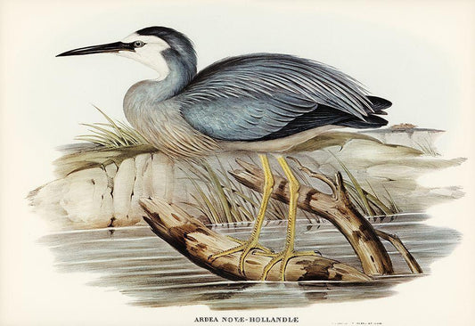 White-fronted Heron-Ardea Novae-Hollandiae White Modern Wood Framed Art Print with Double Matting by Gould, John