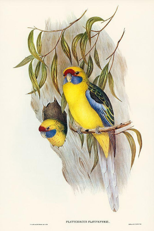 Yellow-bellied Parakeet-Platycercus flaviventris White Modern Wood Framed Art Print with Double Matting by Gould, John