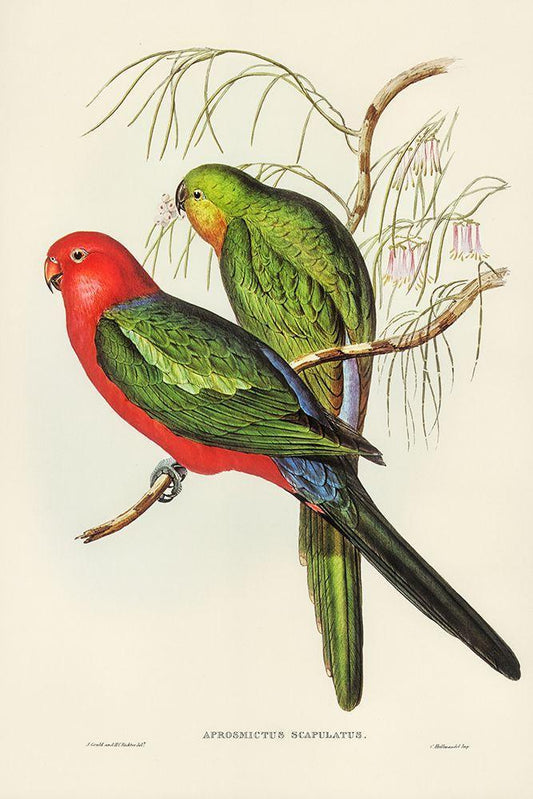 King Lory-Aprosmictus scapulatus White Modern Wood Framed Art Print with Double Matting by Gould, John