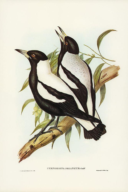 Tasmanian Crow-Shrike-Gymnorhina organicum White Modern Wood Framed Art Print with Double Matting by Gould, John
