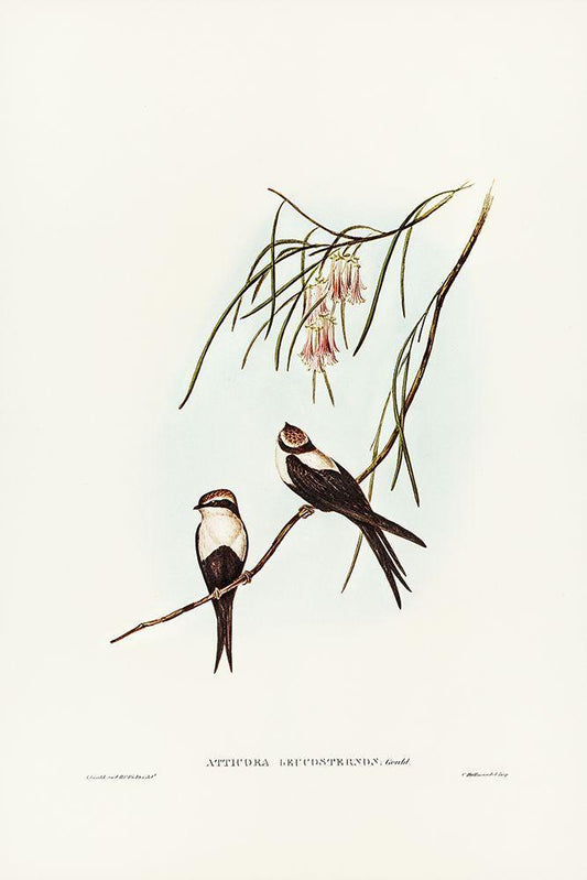 White-breasted Swallow-Atticora leucosternon White Modern Wood Framed Art Print with Double Matting by Gould, John