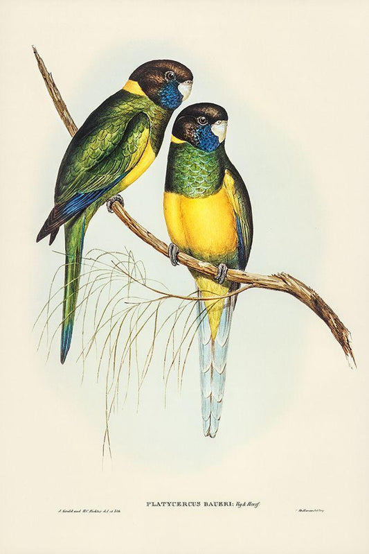 Bauers Parrakeet-Platycercus Bauerii White Modern Wood Framed Art Print with Double Matting by Gould, John