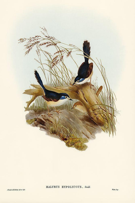 Fawn-breasted Superb Warbler-Malurus hypoleucus White Modern Wood Framed Art Print with Double Matting by Gould, John