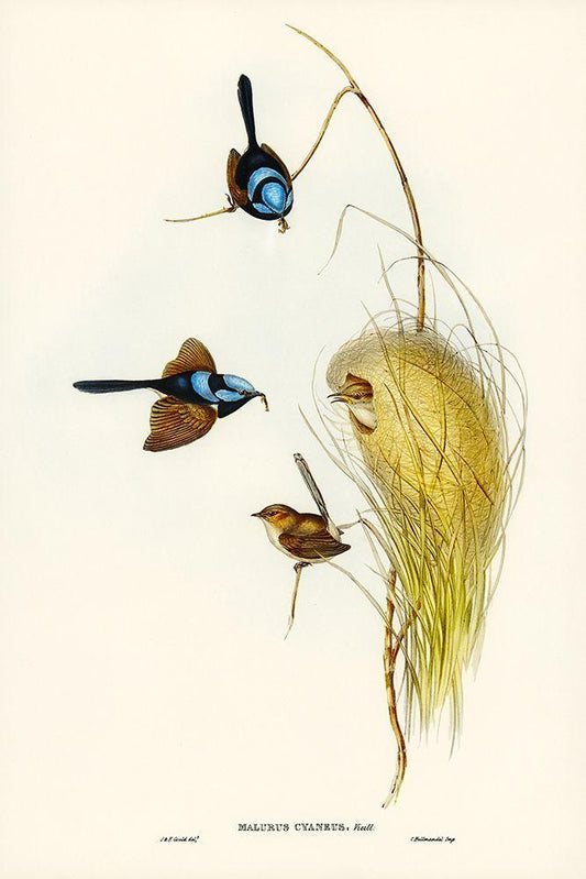 Blue Wren-Malurus cyaneus White Modern Wood Framed Art Print with Double Matting by Gould, John