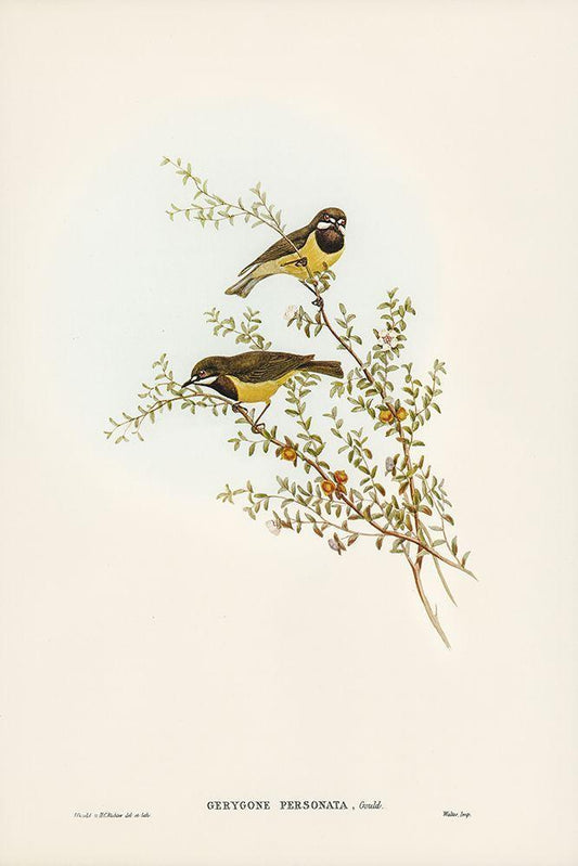 Masked Gerygone-Gerygone personata White Modern Wood Framed Art Print with Double Matting by Gould, John