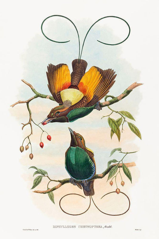 Diphyllodes chrysoptera-Magnificent Bird of Paradise White Modern Wood Framed Art Print with Double Matting by Gould, John
