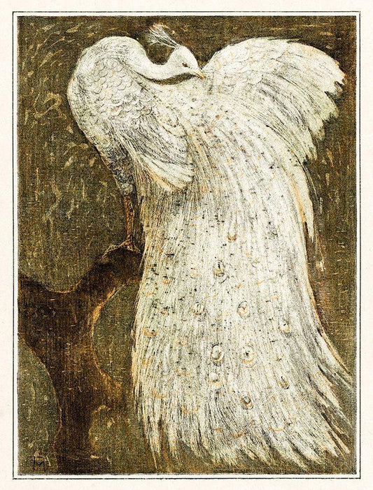 White peacock on branch White Modern Wood Framed Art Print with Double Matting by Hoytema, Theo van