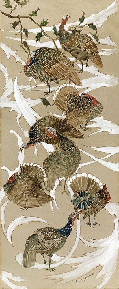 Eight turkeys White Modern Wood Framed Art Print with Double Matting by Hoytema, Theo van
