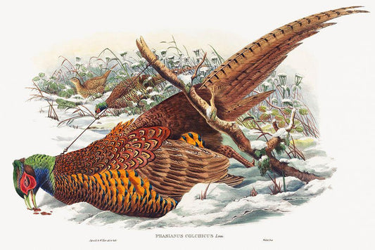 Phasianus colchicus-Ring-necked Pheasant White Modern Wood Framed Art Print with Double Matting by Gould, John
