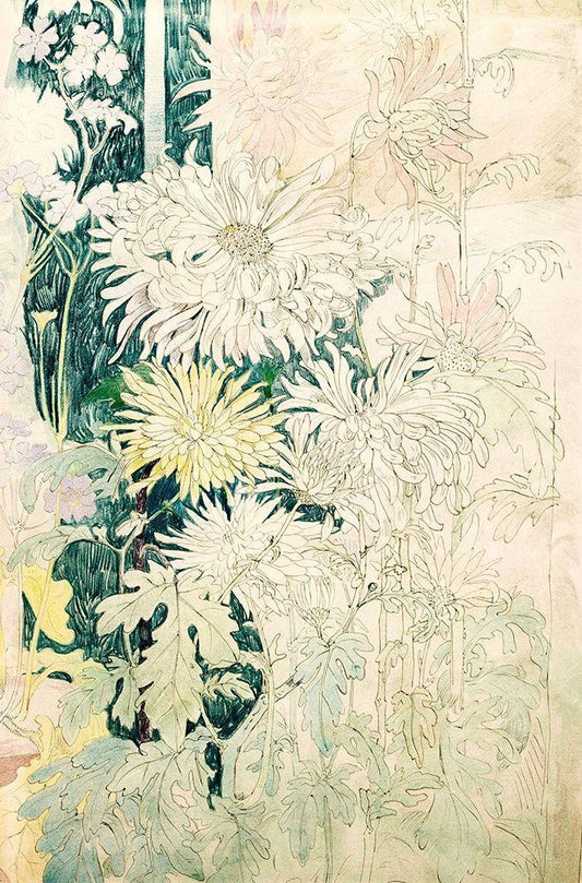Chrysanthemums and fall flowers White Modern Wood Framed Art Print with Double Matting by Hoytema, Theo van