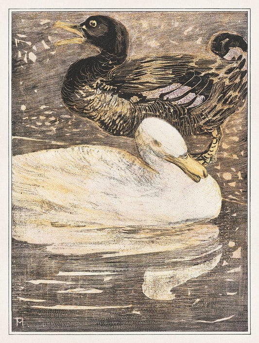Two ducks White Modern Wood Framed Art Print with Double Matting by Hoytema, Theo van