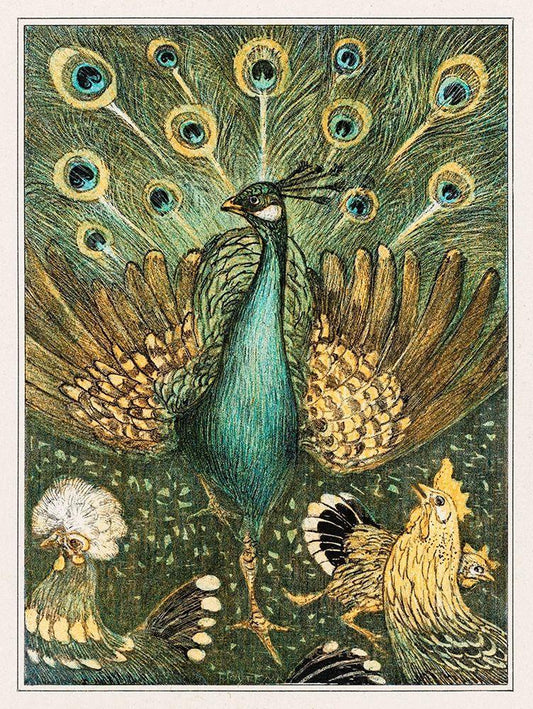 Peacock with chickens White Modern Wood Framed Art Print with Double Matting by Hoytema, Theo van