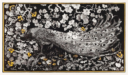 Peacock White Modern Wood Framed Art Print with Double Matting by Hoytema, Theo van