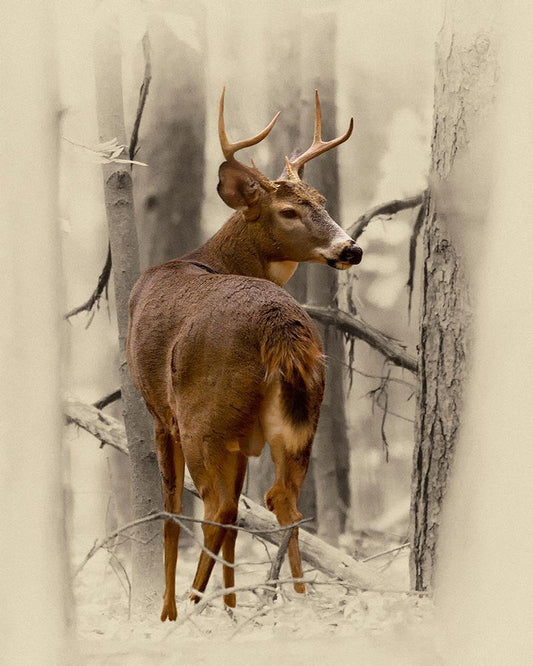 Ohio Buck White Modern Wood Framed Art Print with Double Matting by Brown, Jim