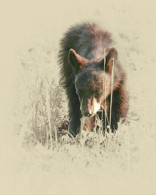 Young Black Bear White Modern Wood Framed Art Print with Double Matting by Brown, Jim