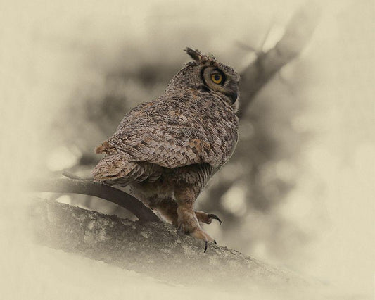 Great Horned Owl White Modern Wood Framed Art Print with Double Matting by Brown, Jim