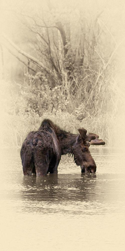 Moose II White Modern Wood Framed Art Print with Double Matting by Brown, Jim