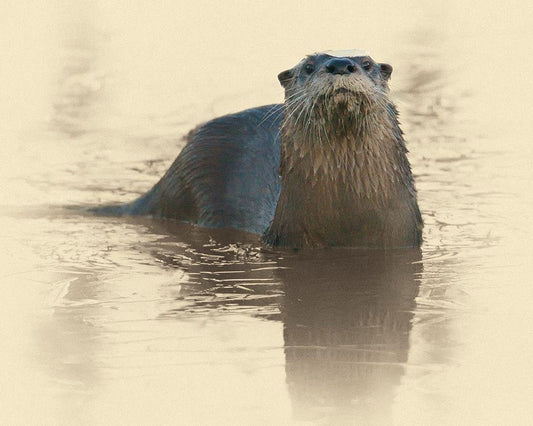 Otter Under Ice White Modern Wood Framed Art Print with Double Matting by Brown, Jim