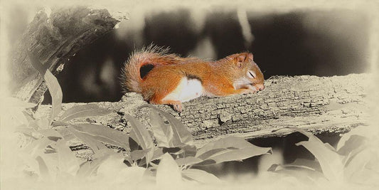 Sleeping Squirrel White Modern Wood Framed Art Print with Double Matting by Brown, Jim
