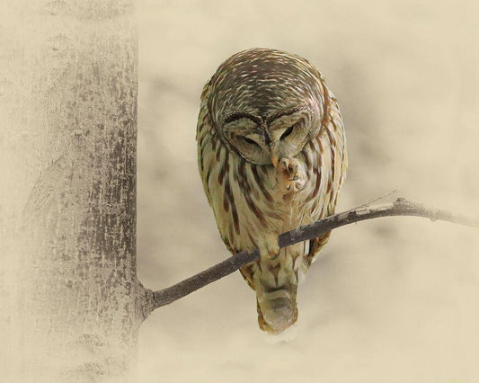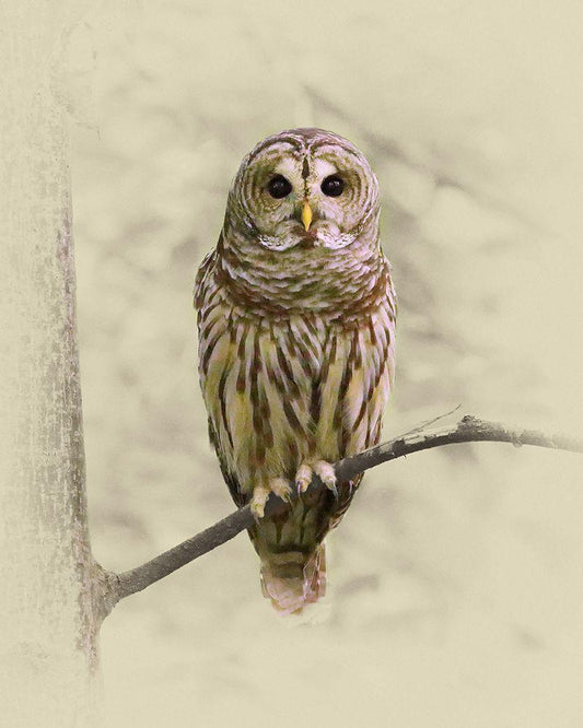 Barred Owl 1 White Modern Wood Framed Art Print with Double Matting by Brown, Jim