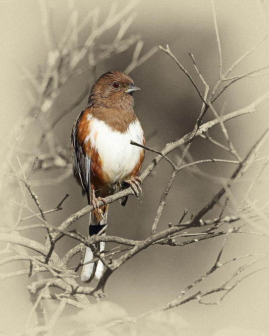 Eastern Towhee Female White Modern Wood Framed Art Print with Double Matting by Brown, Jim