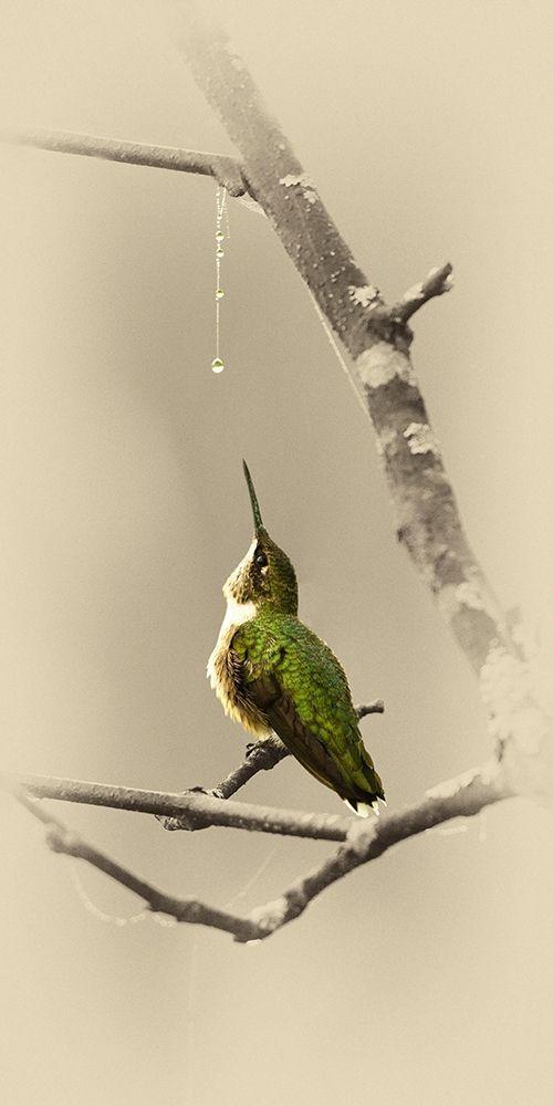 Hummingbird With Dew Drop White Modern Wood Framed Art Print with Double Matting by Brown, Jim