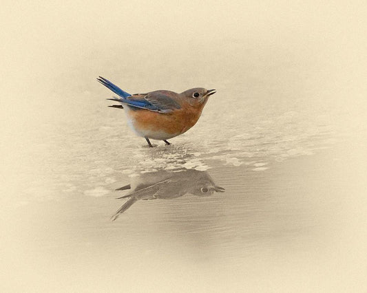 Blue Bird On Ice White Modern Wood Framed Art Print with Double Matting by Brown, Jim