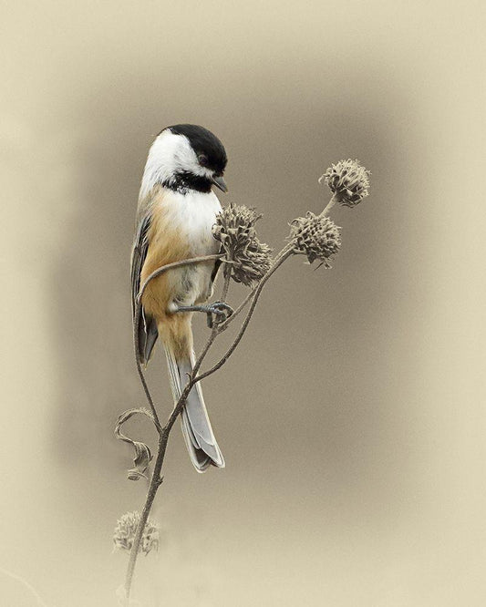 Black Capped Chickadee 1 White Modern Wood Framed Art Print with Double Matting by Brown, Jim