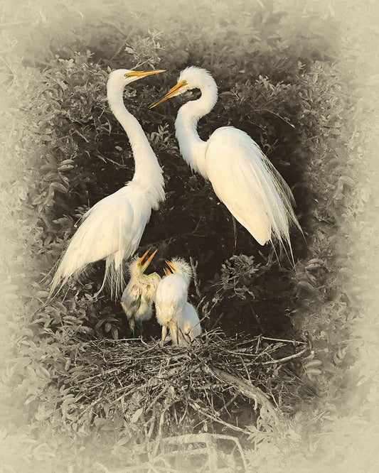 Great Egret Family White Modern Wood Framed Art Print with Double Matting by Brown, Jim