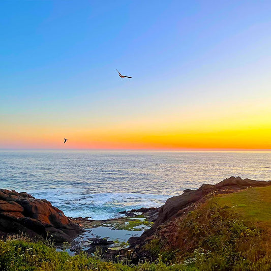 Sunset On The Oregon Coast White Modern Wood Framed Art Print with Double Matting by Tenoever, William