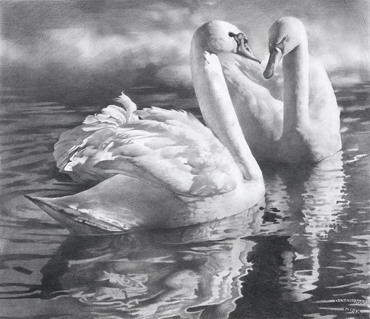 Two swans White Modern Wood Framed Art Print with Double Matting by Chernov, Denis