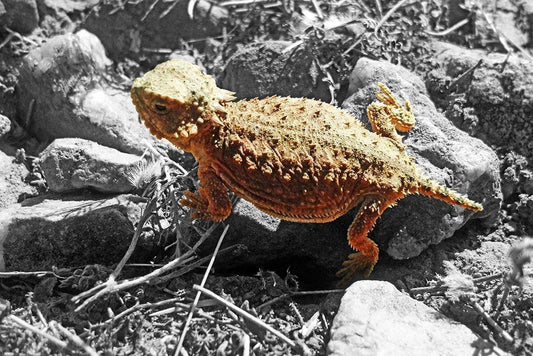 Horned Toad B-W a White Modern Wood Framed Art Print with Double Matting by Popcorn