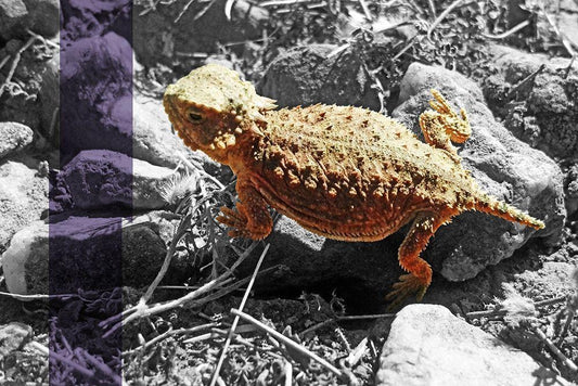 Horned Toad B-W Purple Stripe White Modern Wood Framed Art Print with Double Matting by Popcorn