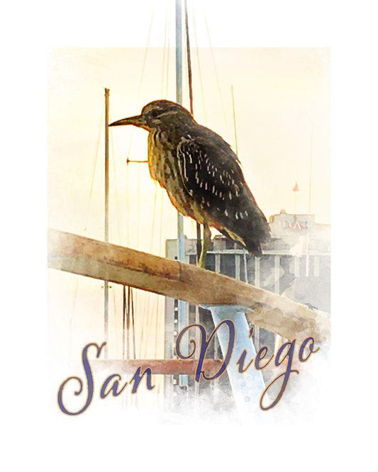 San Diego -Yellow Crowned Night Heron White Modern Wood Framed Art Print with Double Matting by Tenoever, William
