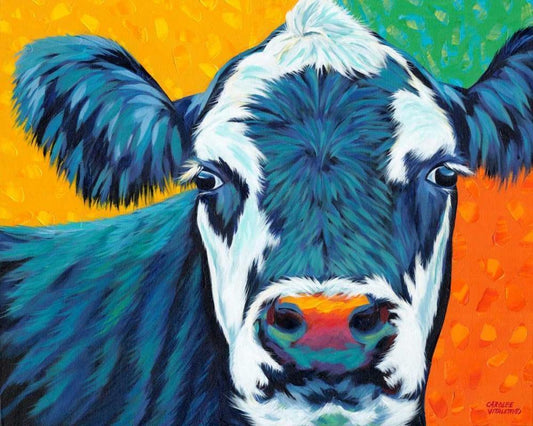 Colorful Country Cows I Black Ornate Wood Framed Art Print with Double Matting by Vitaletti, Carolee