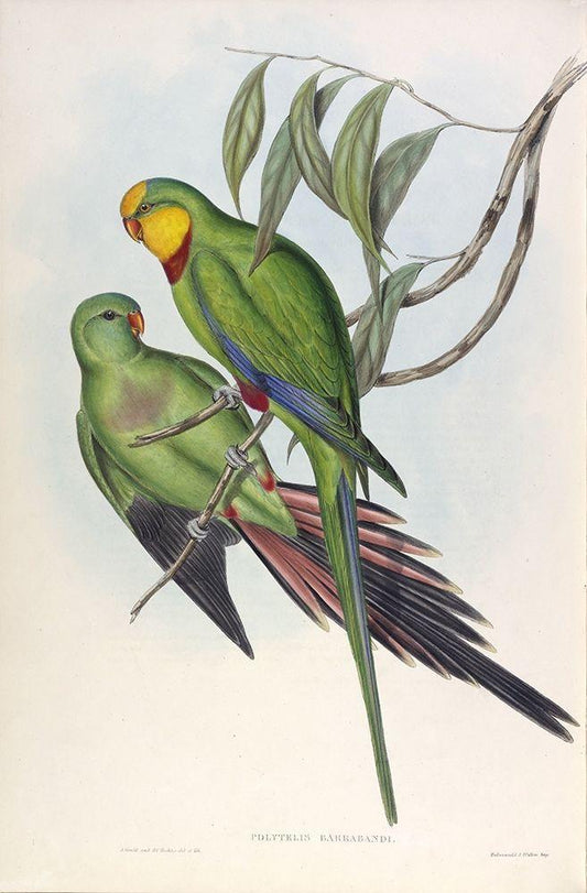 Barrabands Parakeet White Modern Wood Framed Art Print with Double Matting by Gould, John