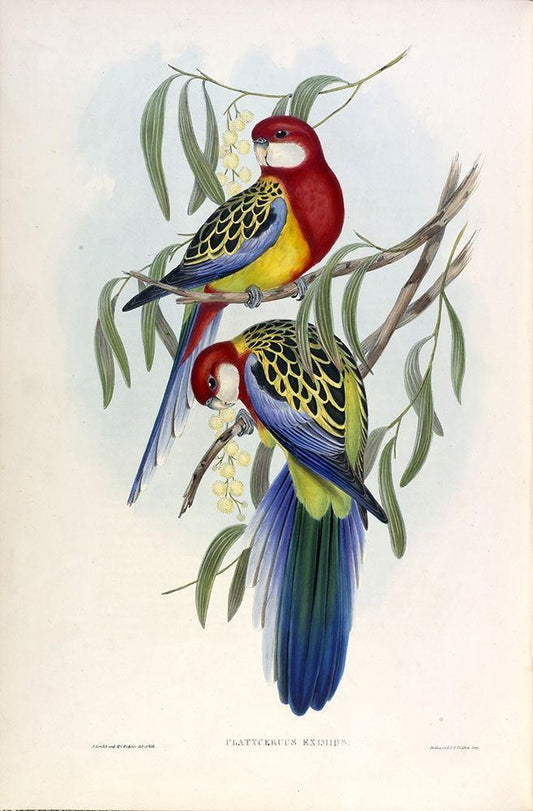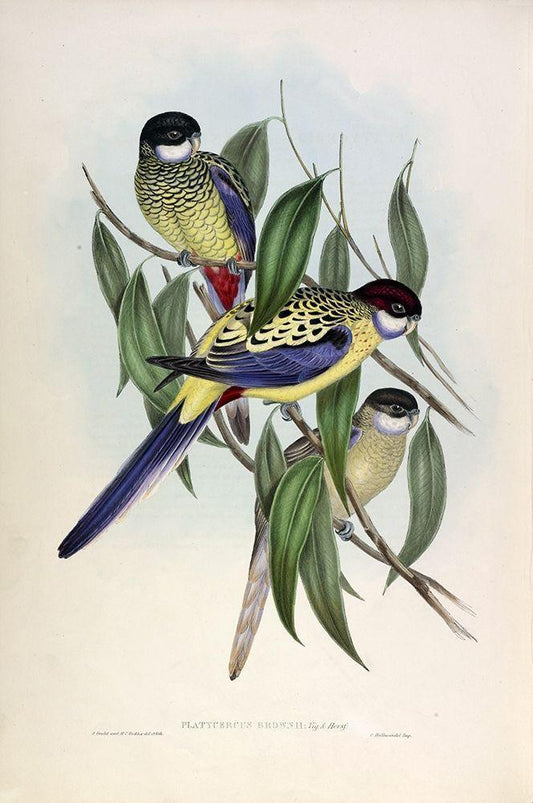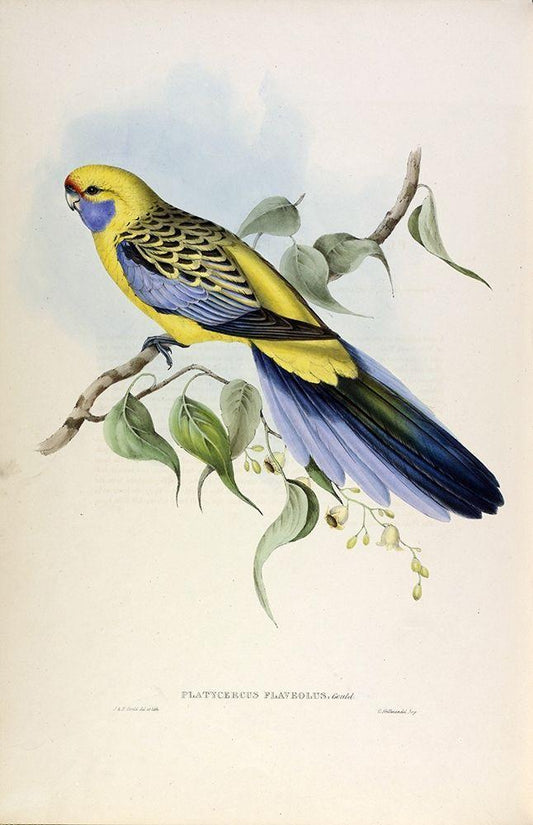 Yellow Rumped Parakeet White Modern Wood Framed Art Print with Double Matting by Gould, John