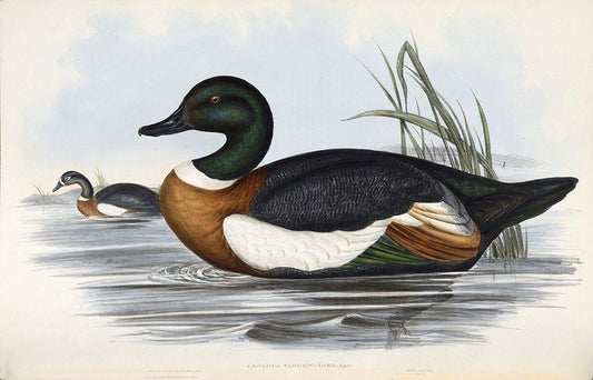 Chestnut Coloured Shieldrake White Modern Wood Framed Art Print with Double Matting by Gould, John
