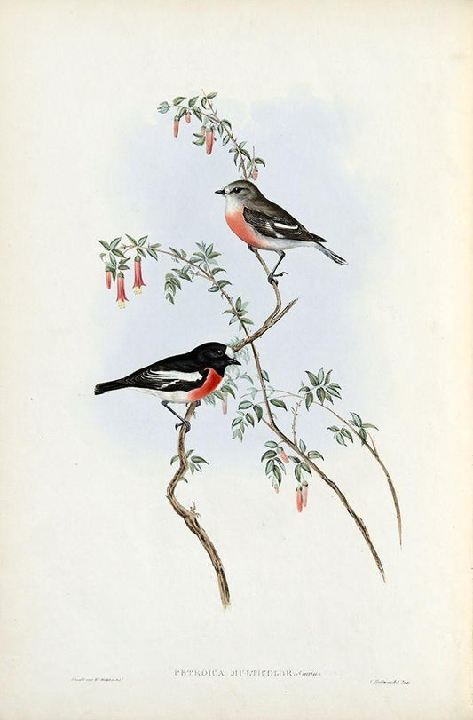 Scarlet Breasted Robin White Modern Wood Framed Art Print with Double Matting by Gould, John