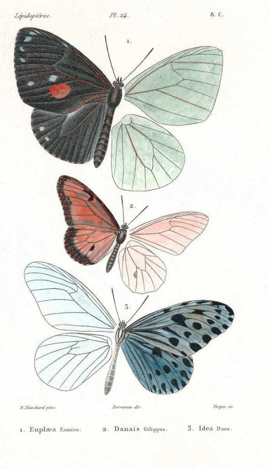 Butterflies, Plate 24 White Modern Wood Framed Art Print with Double Matting by Blanchard, Emile
